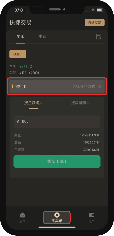 • 3、打开您的个人数字钱包,若您的账户里没有USDT数额,需要先完成USDT购买。