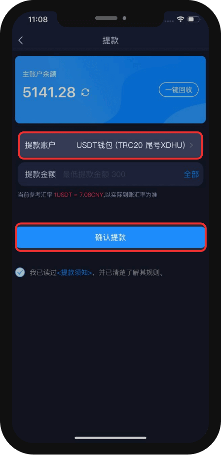• 3、地址绑定成功,进入UED提款页面,选择您绑定的USDT地址进行提款即可。